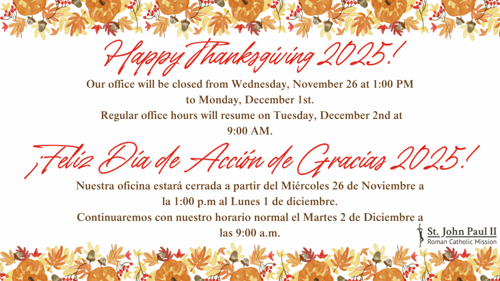 Abriremos las inscripciones para el Catecismo para la Primera Comunión, Confirmación, OICA para Adultos y Niños nuevamente del 8 al 11 de julio de...